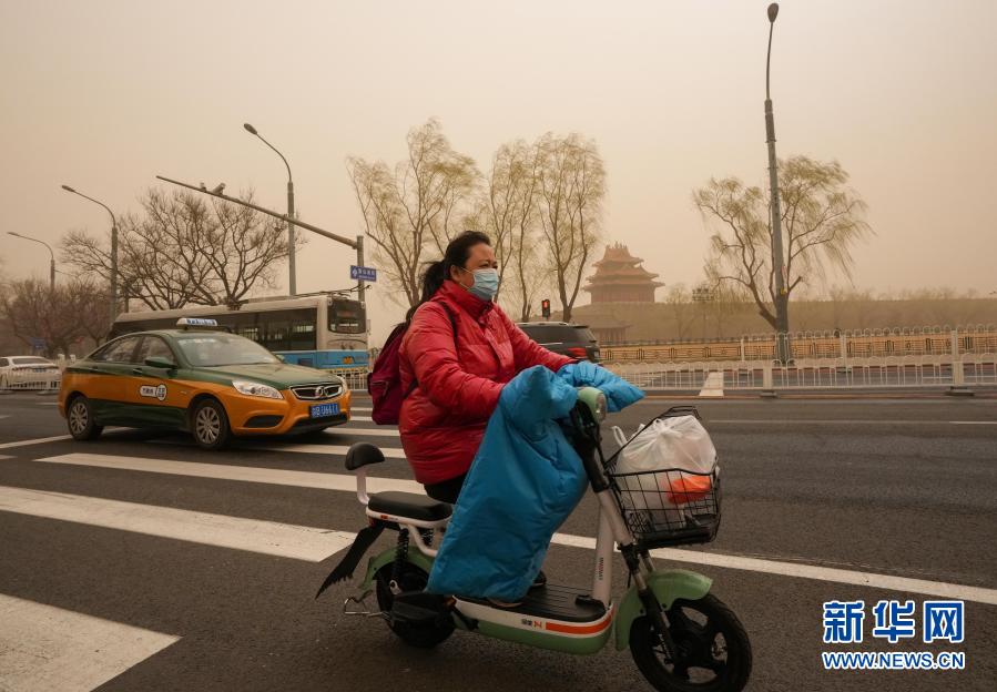 3月15日,市民騎車從北京故宮角樓附近經(jīng)過。當日,我國北方多地出現(xiàn)沙塵天氣。新華社記者 陳曄華 攝