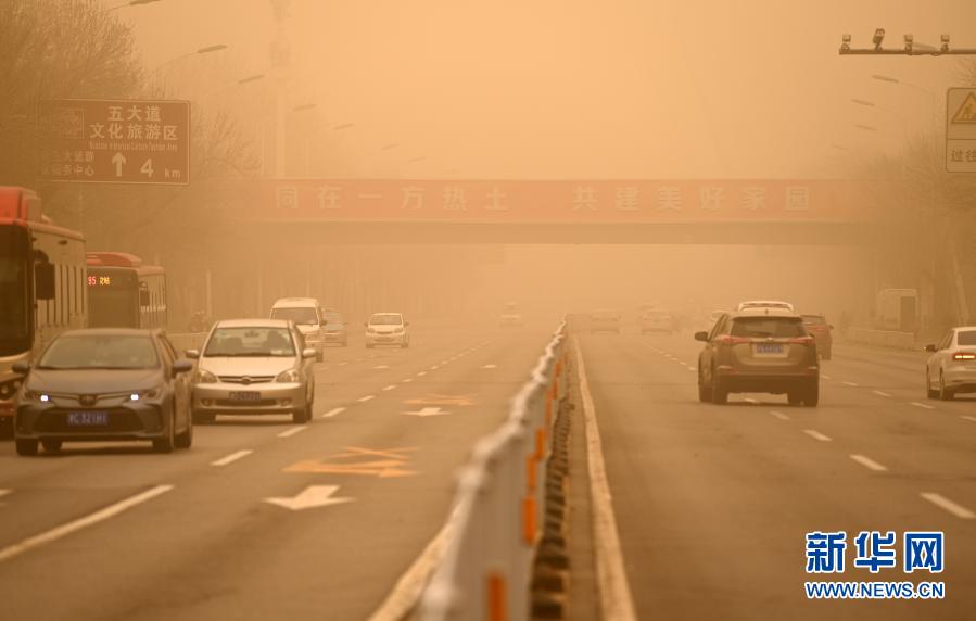 這是3月15日拍攝的天津市南開區(qū)道路。當(dāng)日,我國(guó)北方多地出現(xiàn)沙塵天氣。新華社記者 李然 攝