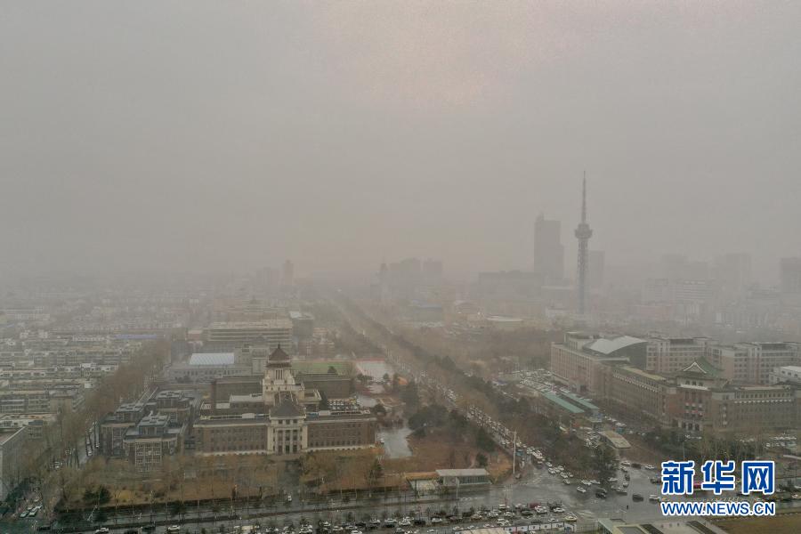 這是3月15日拍攝的沙塵籠罩的吉林省長春市(無人機(jī)照片)。當(dāng)日,我國北方多地出現(xiàn)沙塵天氣。新華社記者 張楠 攝