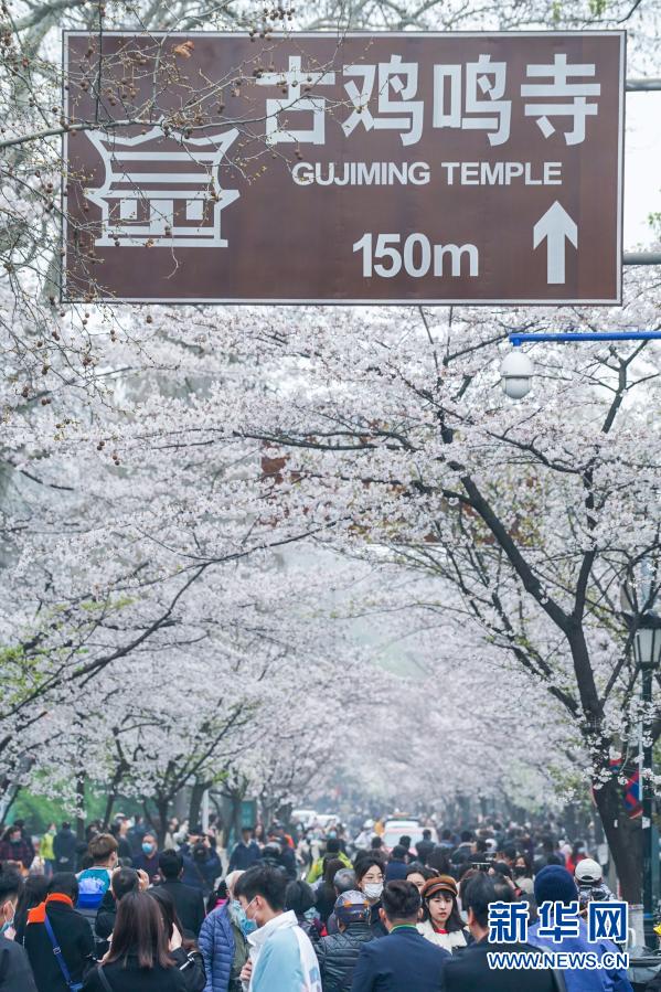 近日,南京街頭盛開的櫻花燦若云霞,吸引眾多市民游客外出賞花游玩,享受春日美景。