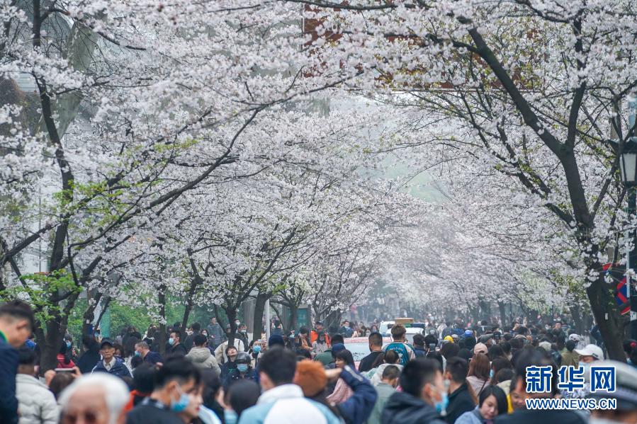 近日,南京街頭盛開(kāi)的櫻花燦若云霞,吸引眾多市民游客外出賞花游玩,享受春日美景。