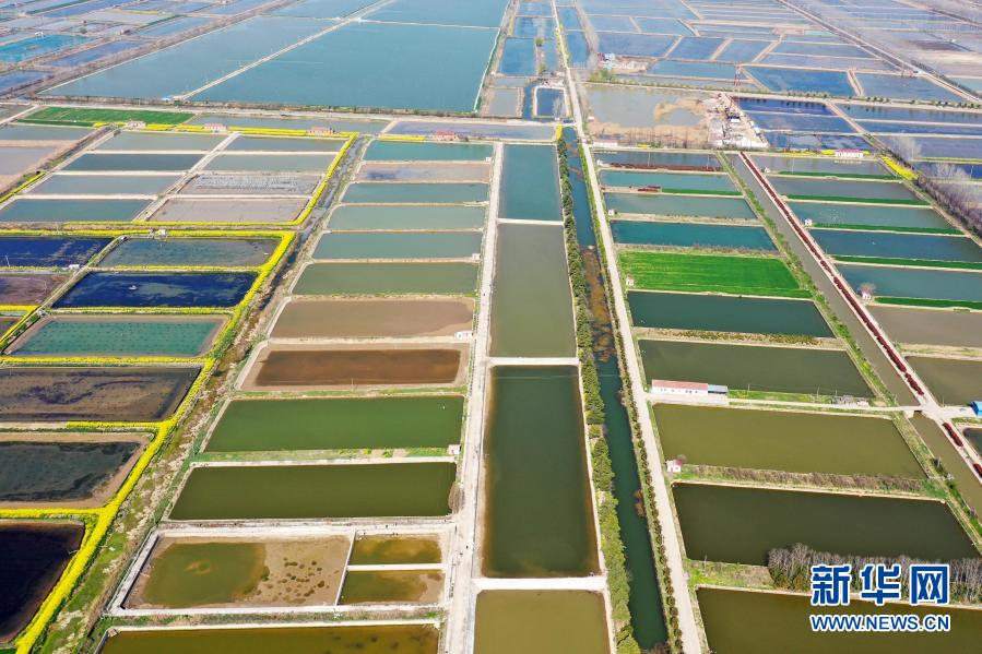 3月24日拍攝的江蘇省淮安市洪澤區(qū)西順河鎮(zhèn)國蟹園(無人機(jī)照片)。