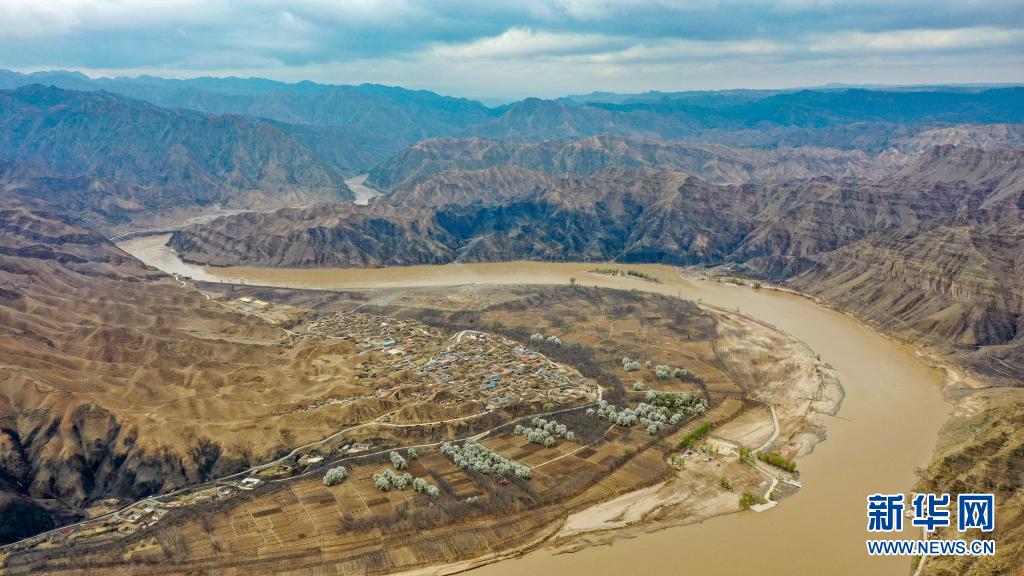 這是位于寧夏中衛(wèi)市黃河黑山峽河段的南長灘村(4月4日攝,無人機照片)。