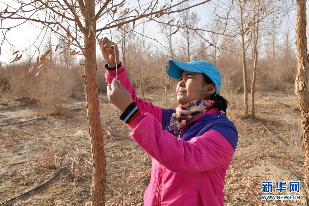 那時(shí),她領(lǐng)到一把鐮刀,鉆進(jìn)車爾臣河沿岸蘆葦叢里,割下一捆捆用來固沙護(hù)苗的蘆葦,一天下來,雙手被蘆葦葉子劃得傷痕累累。