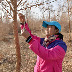 邊種樹、邊研究,帕提古麗和同事實(shí)踐了滴灌節(jié)水技術(shù)、草方格固定、栽植抗旱樹種、防沙林綁草護(hù)苗……沙漠里的樹木成活率不斷提升,生態(tài)環(huán)境不斷變好。