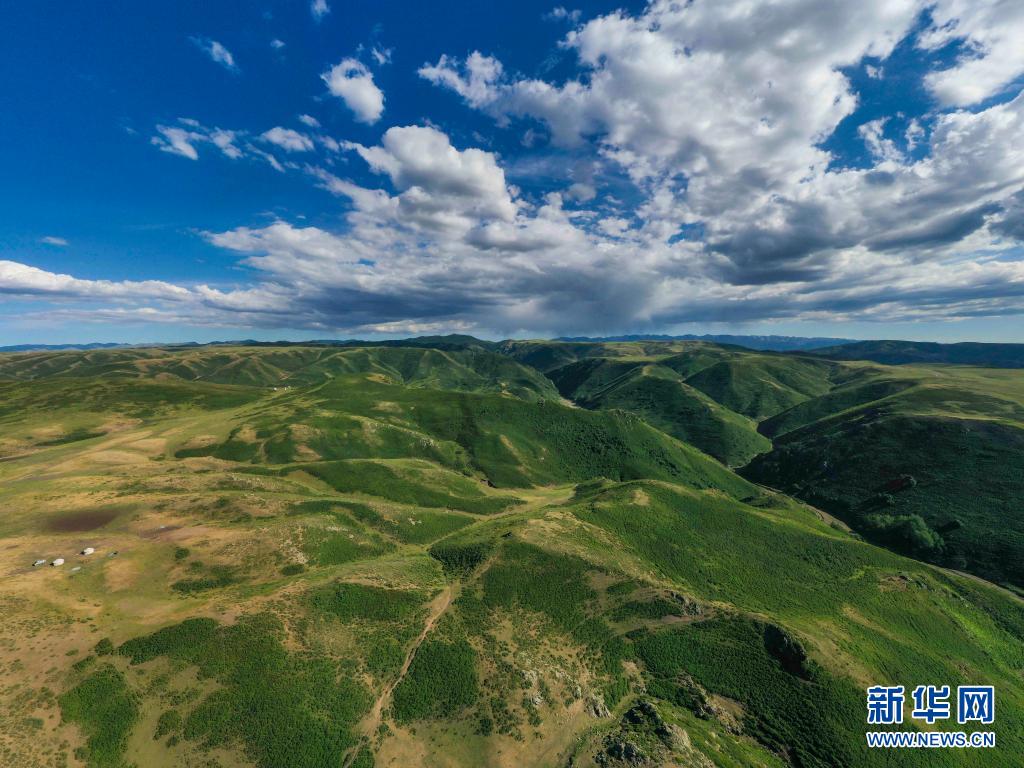 新疆裕民縣巴爾魯克山區(qū)夏牧場(chǎng)景觀(6月16日攝,無(wú)人機(jī)照片)。