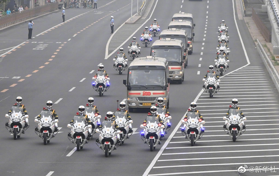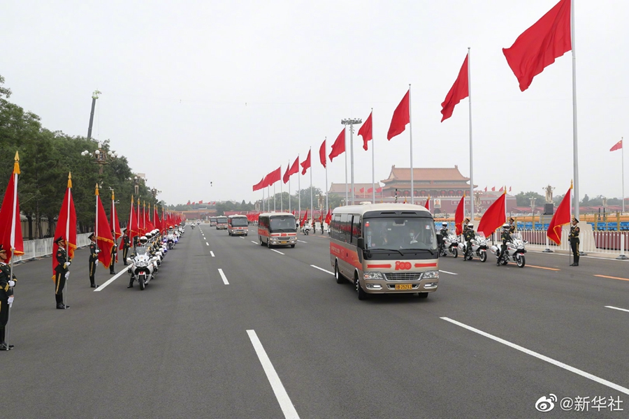 29日上午,“七一勛章”獲得者集體乘坐禮賓車從住地出發(fā),由國賓護衛(wèi)隊護衛(wèi)前往人民大會堂。