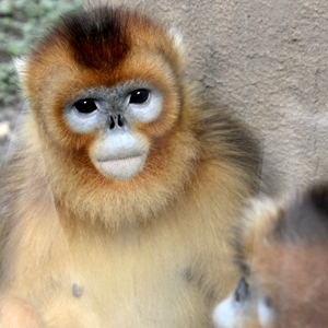 北京動(dòng)物園內(nèi)的滇金絲猴在室內(nèi)乘涼(6月28日攝)。