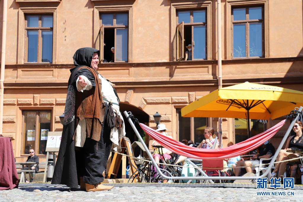 芬蘭古城圖爾庫于7月1日至4日舉行“中世紀(jì)市集”活動。人們身著中世紀(jì)風(fēng)格服裝售賣貨品,表演短劇、馬戲和歌舞。