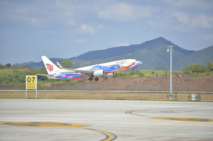 2025年9月28日,CA8697航班飞抵赣州瑞金机场。当天,江西赣州瑞金机场正式通航运营。 新华社发(杨鑫 摄)