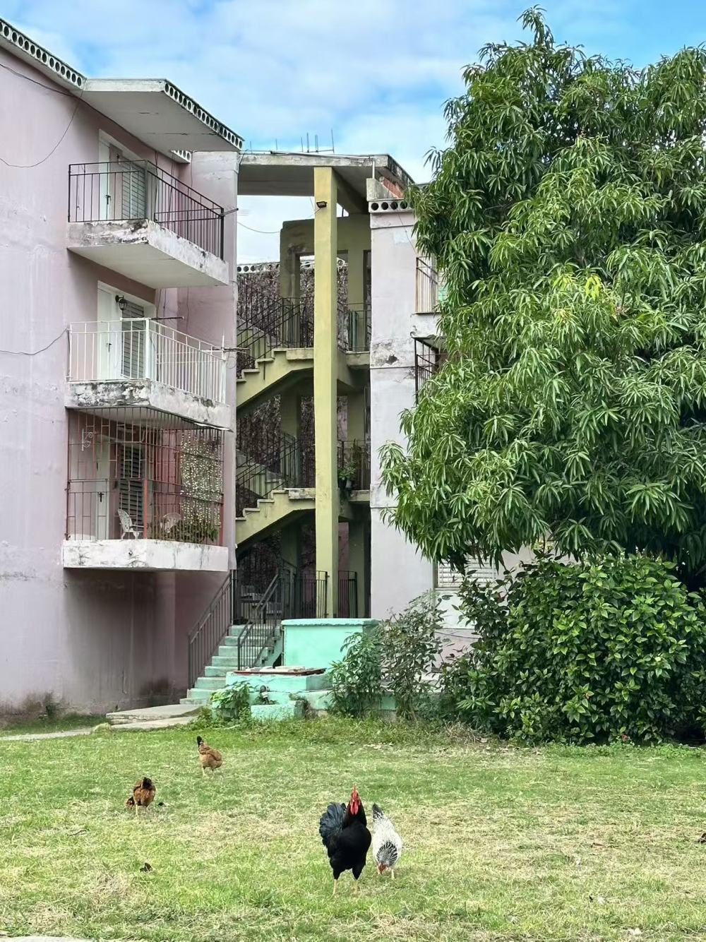 哈瓦那住宅区内“闲庭信步”的鸡(马桂花 摄)