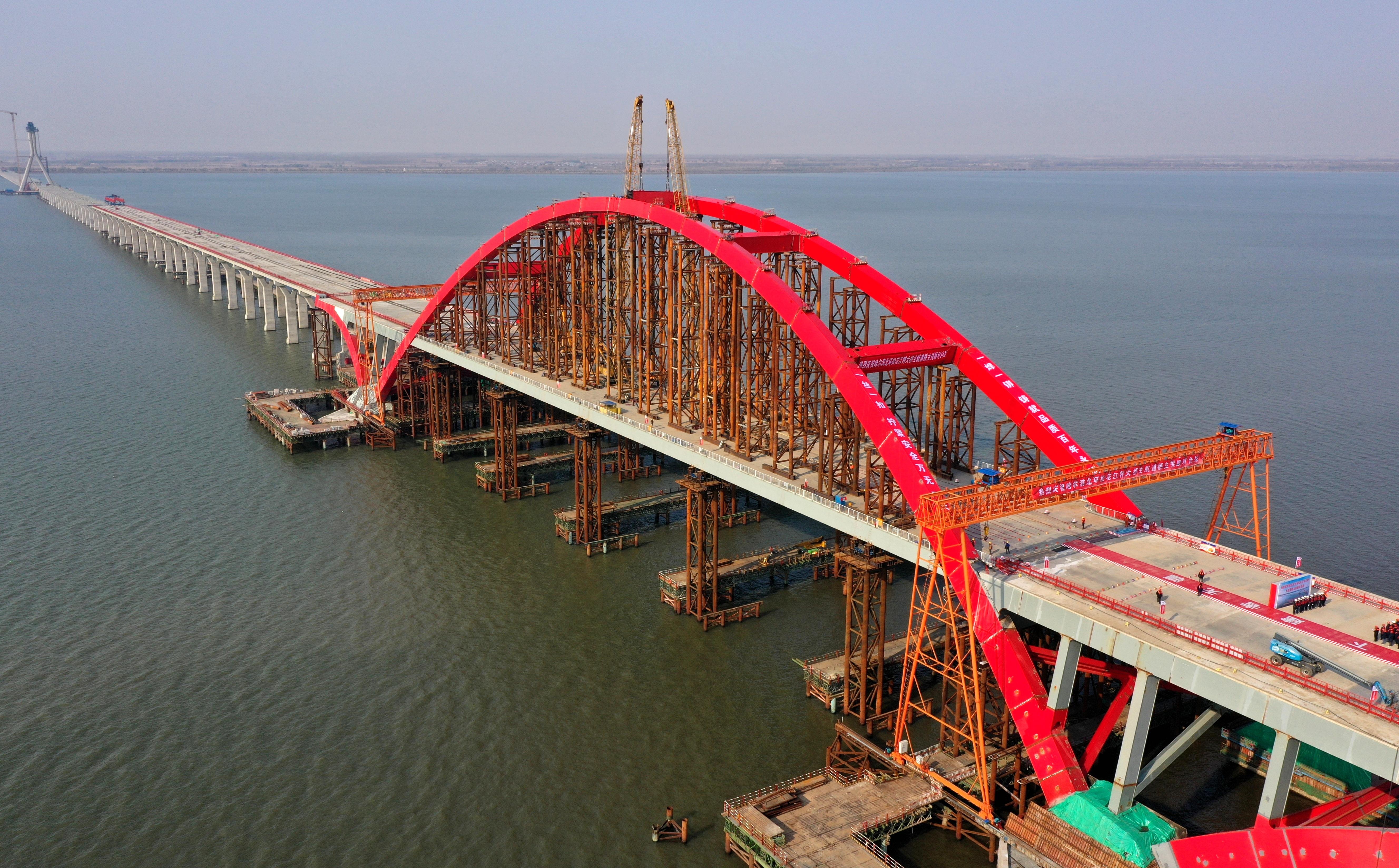 松花江特大橋主航道橋拱肋拼裝成功合龍