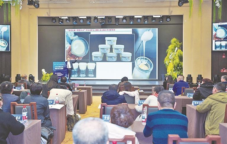 路演環(huán)節(jié)聚焦合成生物學(xué)創(chuàng)新應(yīng)用,來(lái)自哈爾濱工業(yè)大學(xué)、東北農(nóng)業(yè)大學(xué)、哈爾濱商業(yè)大學(xué)等高校的六個(gè)生物創(chuàng)新項(xiàng)目,集中展現(xiàn)了高校在前沿科研與產(chǎn)業(yè)應(yīng)用中的硬核實(shí)力。其中,《“金乳雙臻”蛋黃拉絲酸奶》《脂肪酶催化酯化改性淀粉制備技術(shù)及系列產(chǎn)品研發(fā)》等項(xiàng)目,聚焦食品健康領(lǐng)域,推動(dòng)營(yíng)養(yǎng)與技術(shù)創(chuàng)新融合;《農(nóng)作物秸稈生物工程降解生產(chǎn)有機(jī)肥項(xiàng)目》《可食性抑菌防腐纖維膜與益生菌靶向遞送系統(tǒng)開發(fā)及應(yīng)用》等項(xiàng)目,致力于環(huán)境治理與資源循環(huán),彰顯生物技術(shù)在綠色發(fā)展中的廣闊前景。