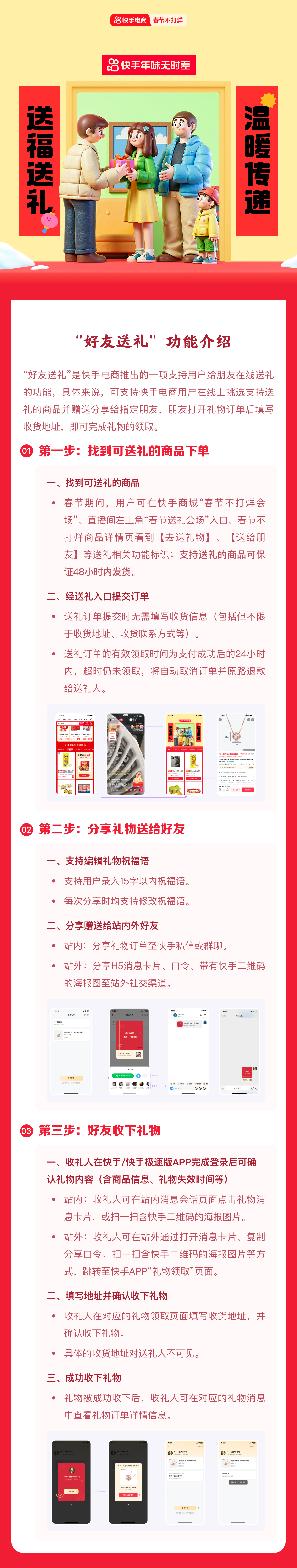 用戶可在快手商城“春節(jié)不打烊會場”體驗送禮物功能