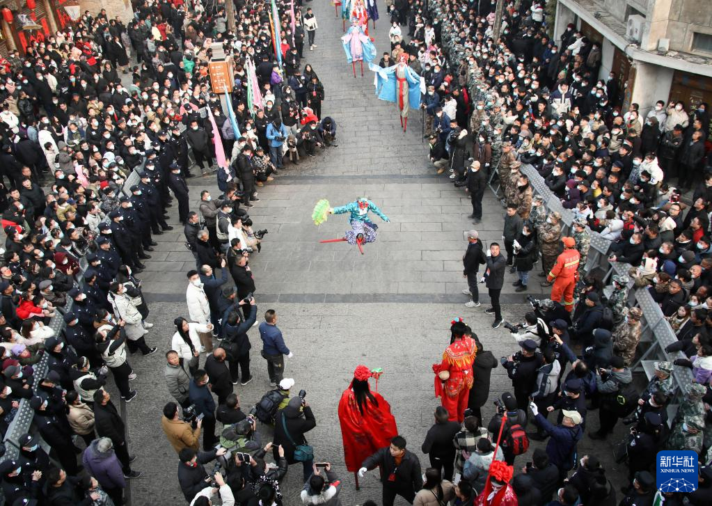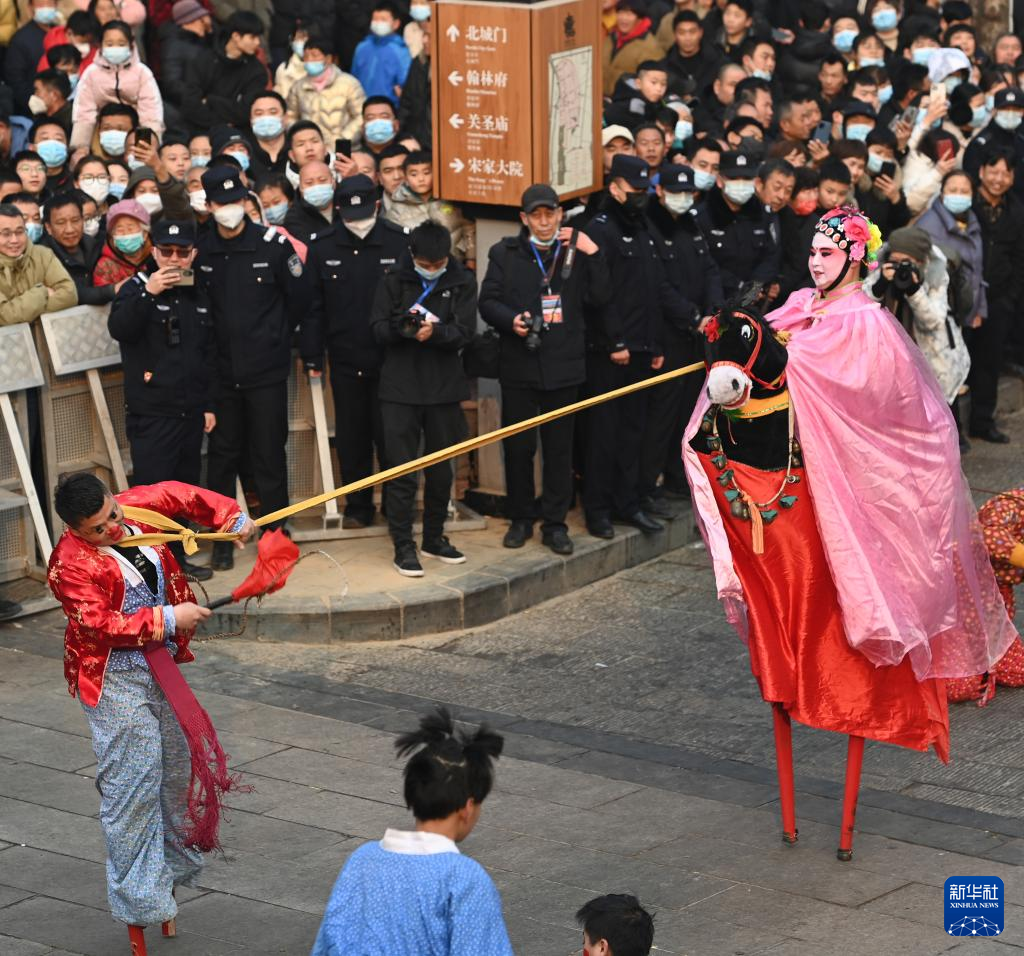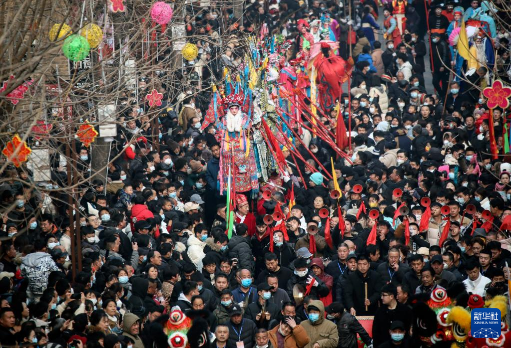当日是农历正月十六,在河南省浚县举行的正月古庙会上,几十支社火团队轮番表演,踩高跷、扭秧歌、耍狮子,锣鼓喧天,热闹非凡,形成一道富有特色的中原文化景观。河南省浚县的正月古庙会已有1600多年历史,有“华北第一庙会”之称,被誉为民俗文化的“活化石”,是中国民间文化保护工程项目、国家级非物质文化遗产。