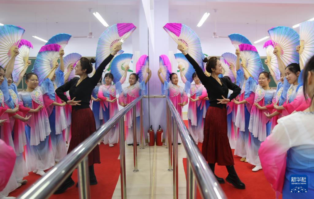 2月14日,在承德市双桥区石洞子沟小学,学生在老师的指导下练习舞蹈。