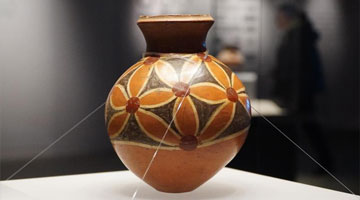 2月13日,在马来西亚雪兰莪州,福建省陶瓷艺术家徐建勇介绍展品。