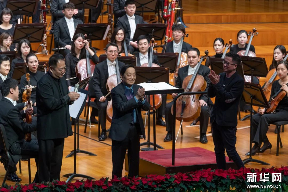 2月17日,在国家大剧院管弦乐团奏响的“似水流年”音乐会上,《远渡》作品首演的最后一个音符落下后,韩美林也与作曲家姚晨携手登上舞台。