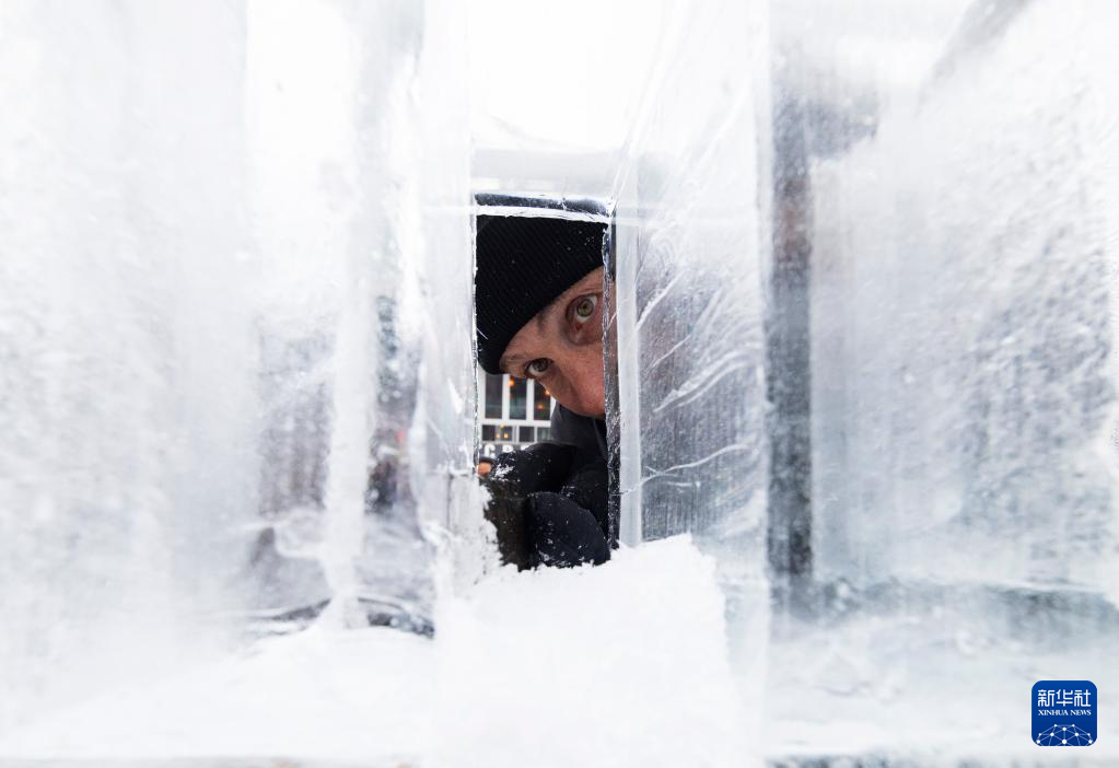 2月18日,冰雕师在加拿大多伦多街头制作冰雕。