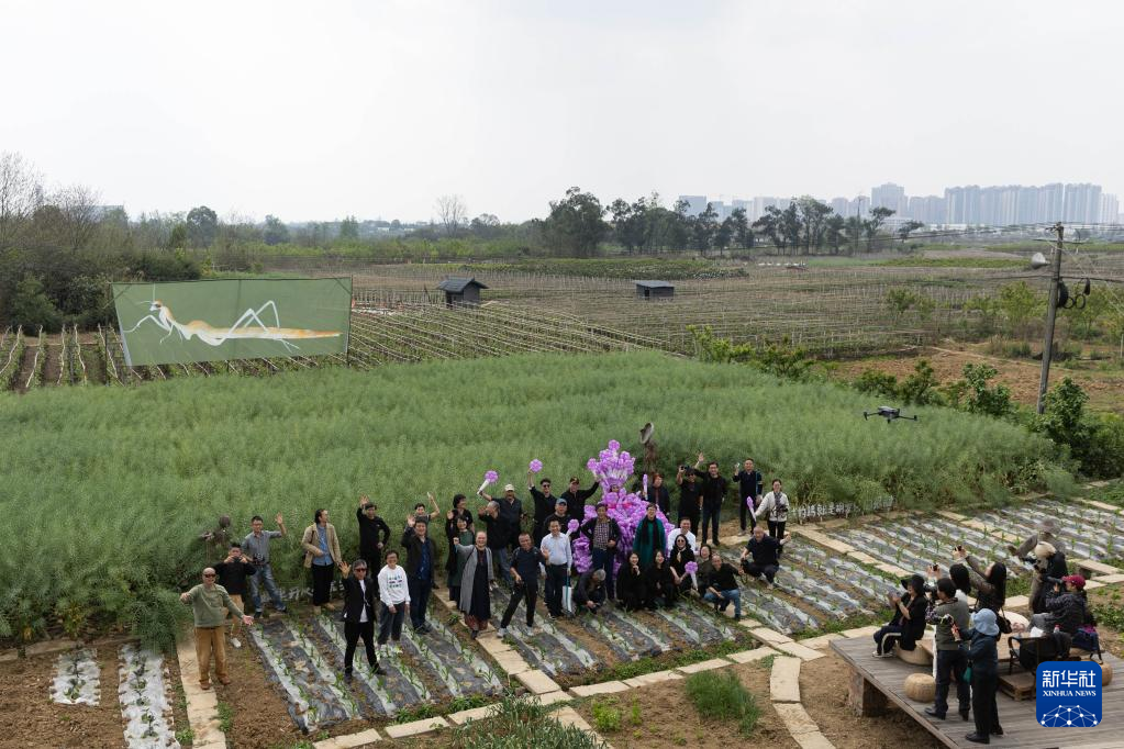 4月1日,参加影像艺术展的嘉宾在田间合影。