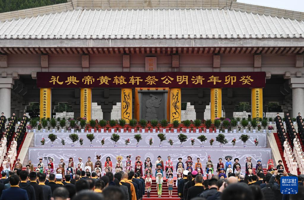 当日,癸卯年清明公祭轩辕黄帝典礼在陕西省黄陵县桥山黄帝陵祭祀广场举行。