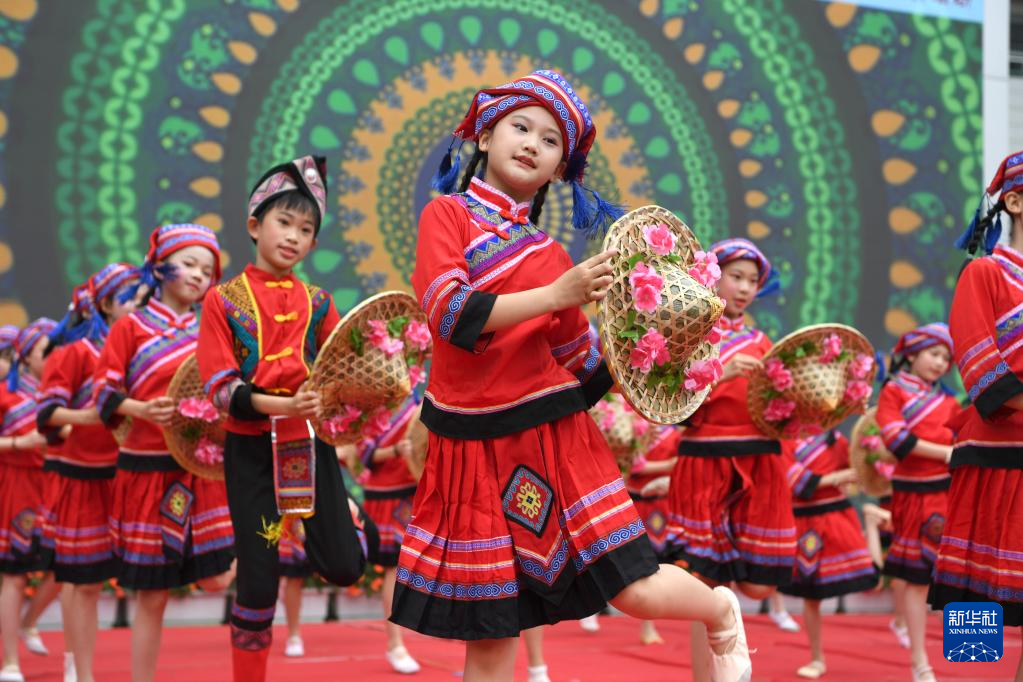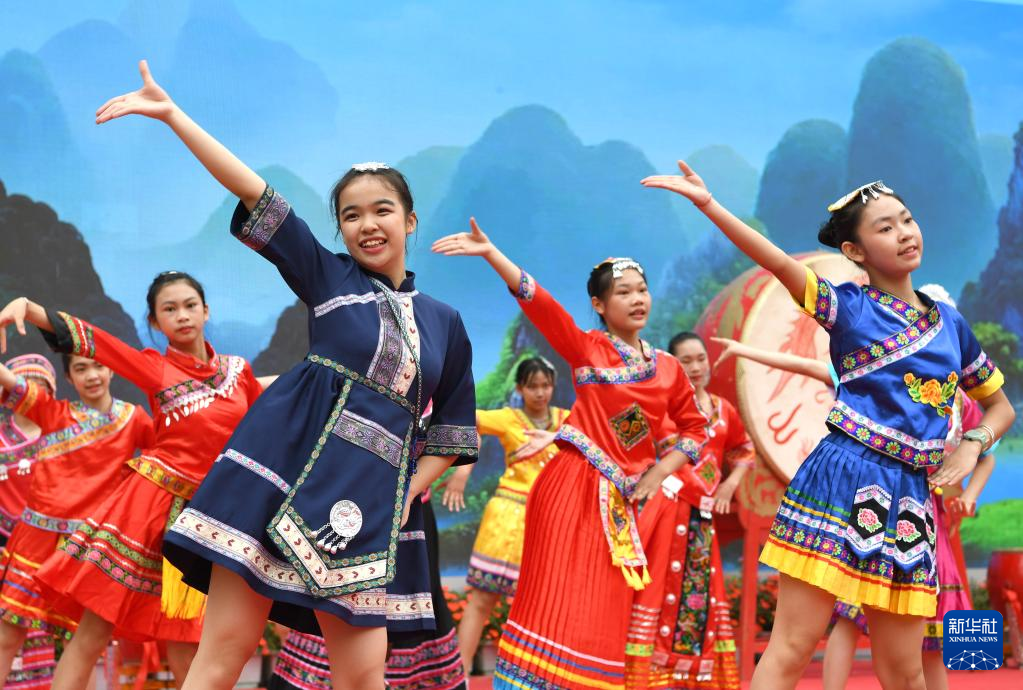 当日,广西南宁市逸夫小学举行2023“壮族三月三”暨“铸牢中华民族共同体意识”主题教育活动。色彩缤纷的民族服装,民族风情浓郁的歌舞表演,多种多样的特色美食,让校园处处洋溢着欢乐。随着传统节日“壮族三月三”临近,广西各地陆续开展丰富多彩的庆祝活动。