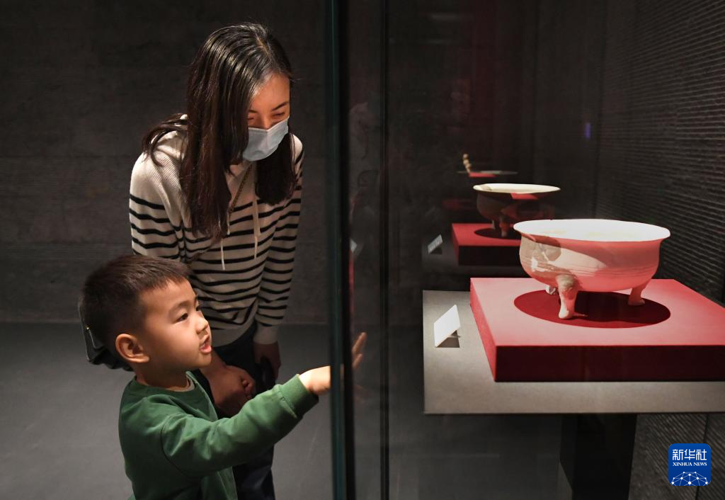 4月27日,参观者在曹操高陵遗址博物馆内观看展品。