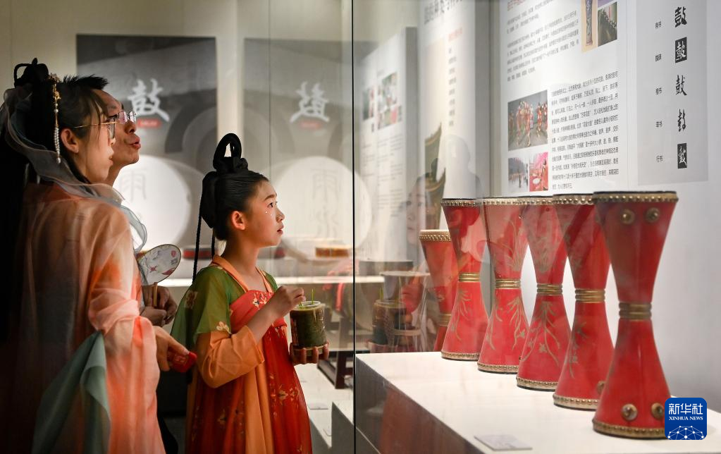 5月1日,游客在西安市钟鼓楼博物馆参观鼓文化展。新华社发(邹竞一 摄)