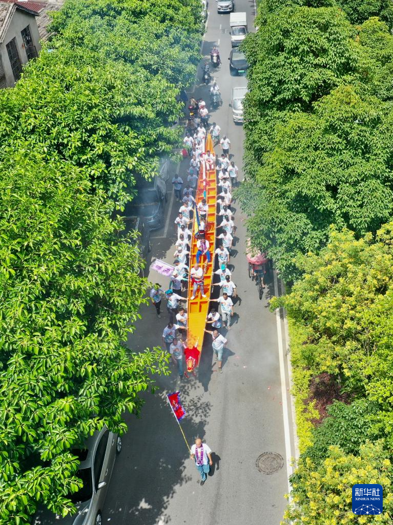 5月31日,龙舟爱好者将新龙舟运转到连江天后宫。