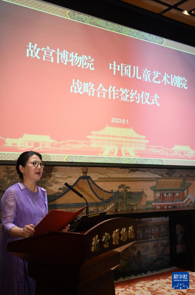 当日,故宫博物院与中国儿童艺术剧院在北京举行战略合作签约仪式。双方将在剧目创排、打造品牌、文创产品开发等方面加强合作,携手打造以故宫为题材的儿童戏剧精品,利用舞台艺术形式,让中华优秀传统文化走进中国孩子的心里,也让更多少年儿童走进故宫博物院,走进中国儿童剧场。