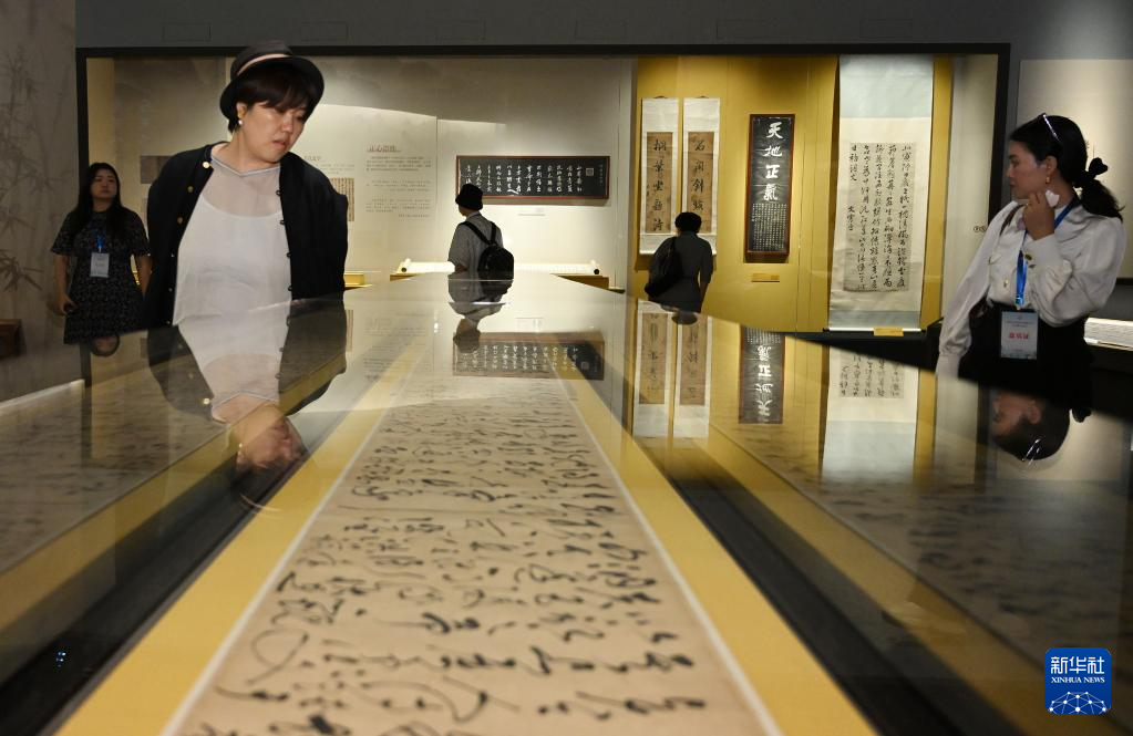 6月10日,活动嘉宾在成都博物馆内参观“汉字中国:方正之间的中华文明展”。