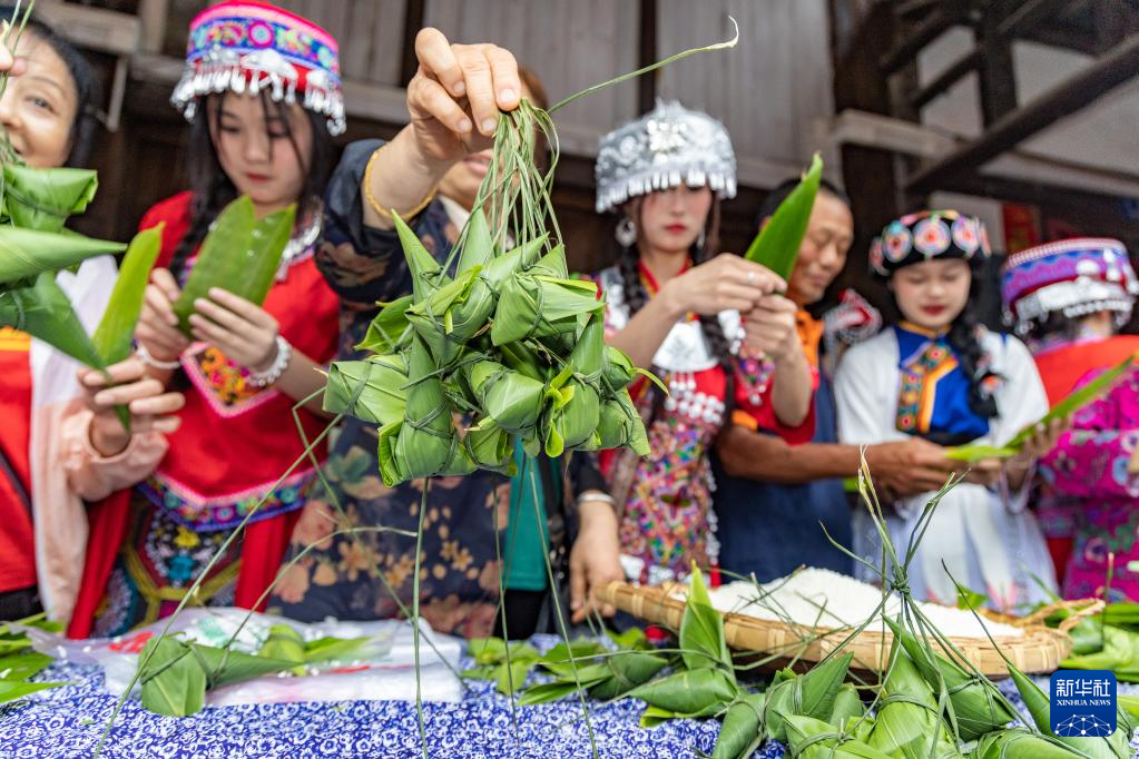 在端午来临之际,重庆市永川区板桥镇的村民开展“我们的节日·端午”主题活动,通过包粽子、制作香囊、舞泥鳅灯、打腰鼓等传统民俗活动迎接佳节。