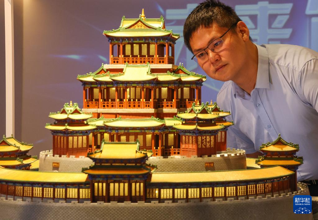 伍涛在公司研究治镜阁样式雷模型,从传统营造工艺上汲取创意灵感(6月27日摄)。