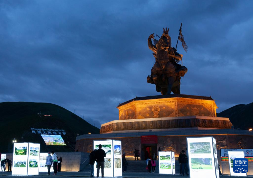 7月23日,人们在青海玉树格萨尔广场参观2023首届中国野生动物摄影大展预展。