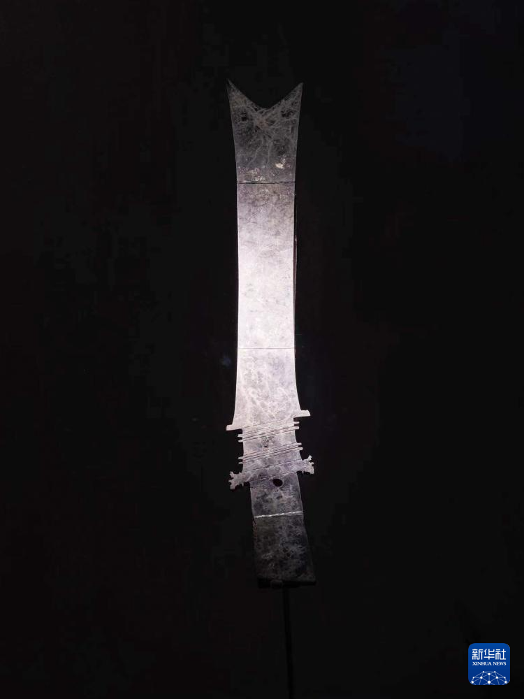 这是7月26日在三星堆博物馆新馆拍摄的玉璋。这是三星堆遗址目前出土最大的玉璋。新华社记者 童芳 摄