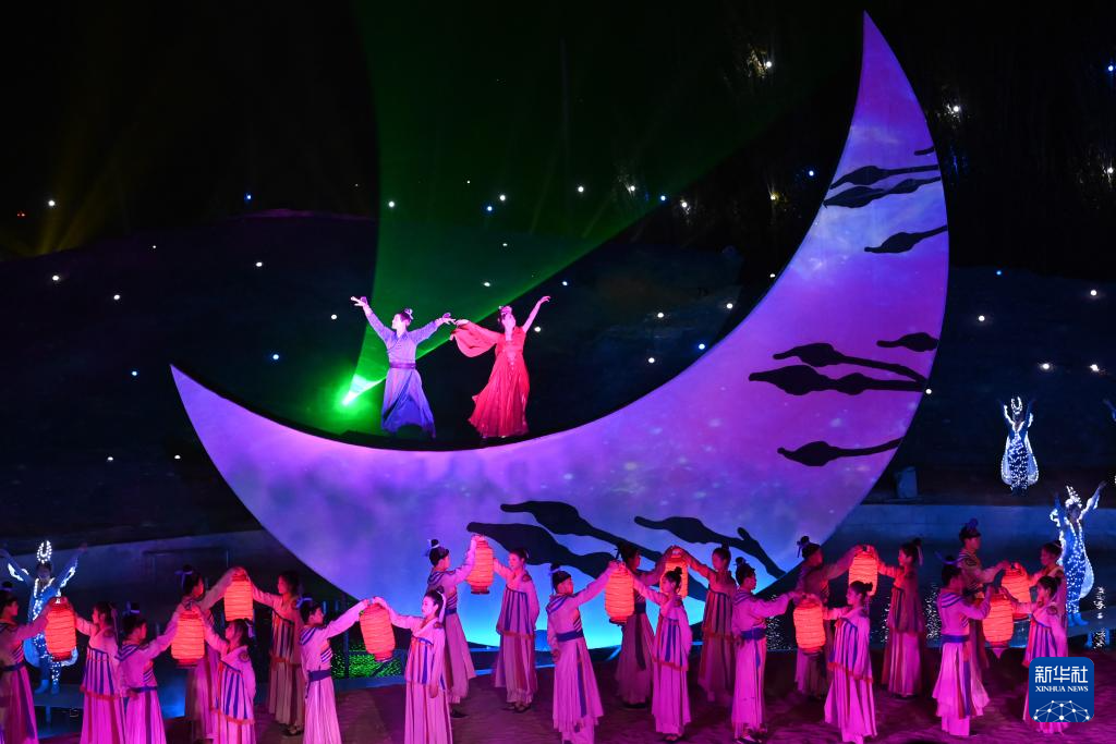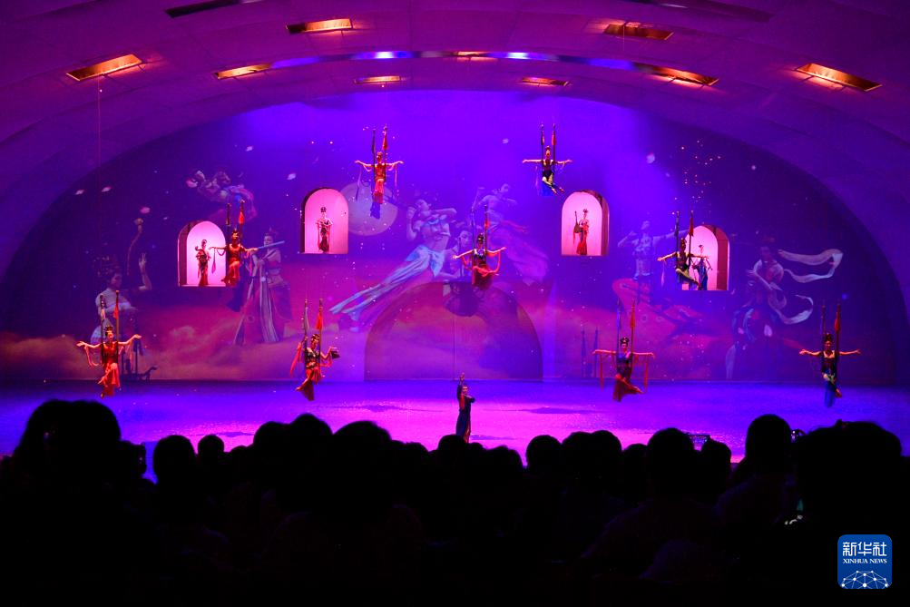 今年以来,脱胎于敦煌文化的洞窟沉浸式体验剧《乐动敦煌》、室内情景体验剧《又见敦煌》、沙漠实景演出《敦煌盛典》和中国残疾人艺术团情景音画剧《千手千眼》四场剧目在丝路名城甘肃敦煌同步上演,剧目将敦煌历史底蕴、服饰文化、乐舞文化等生动融合,为游客呈现出精彩绝伦的敦煌文化视觉盛宴,深受中外游客喜爱。截至8月10日,四大剧目今年已累计演出1175场次,观看游客突破66万人次。其中,《敦煌盛典》以敦煌鸣沙山月牙泉为背景,将沙漠景观与现代舞美结合,将墙体灯光融入实景演出,讲述了一段发生在古丝绸之路重镇敦煌的爱情故事,展示了敦煌的历史文化及人文风貌。