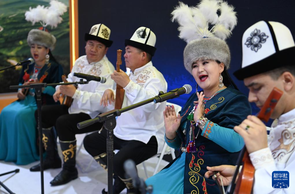 8月17日,演员在交流合作馆新疆维吾尔自治区展区演唱歌曲。
