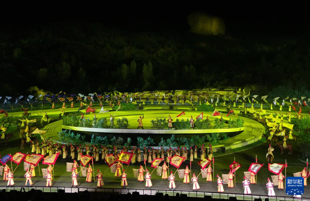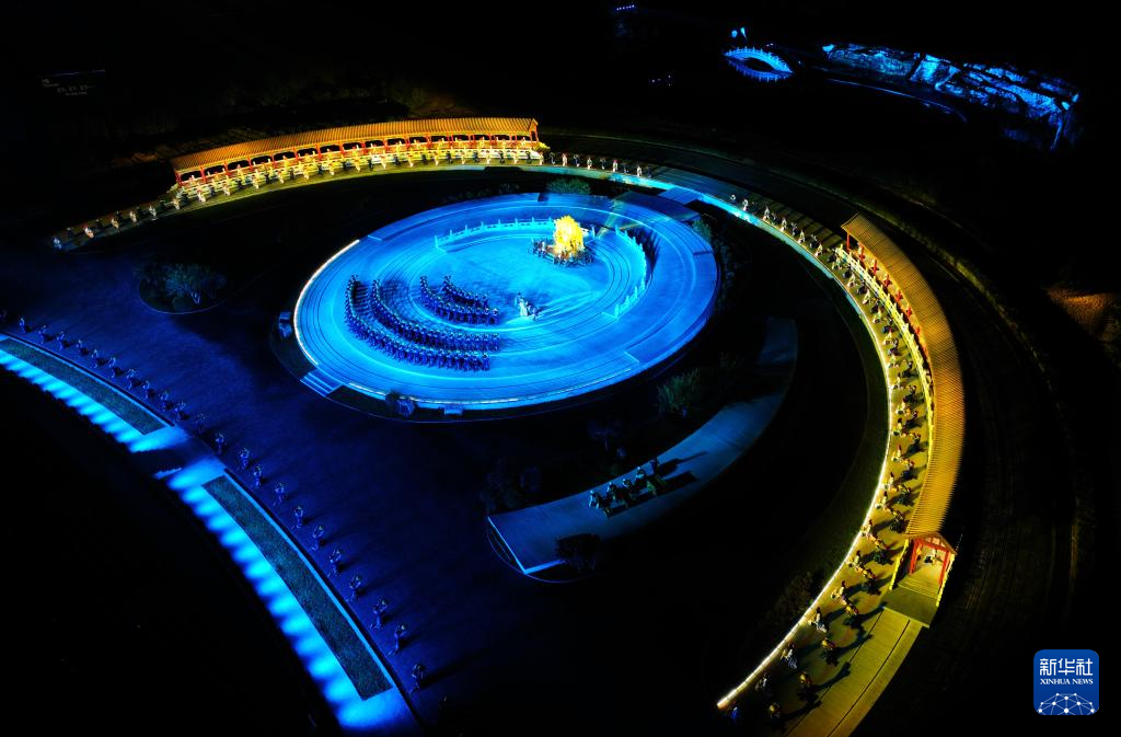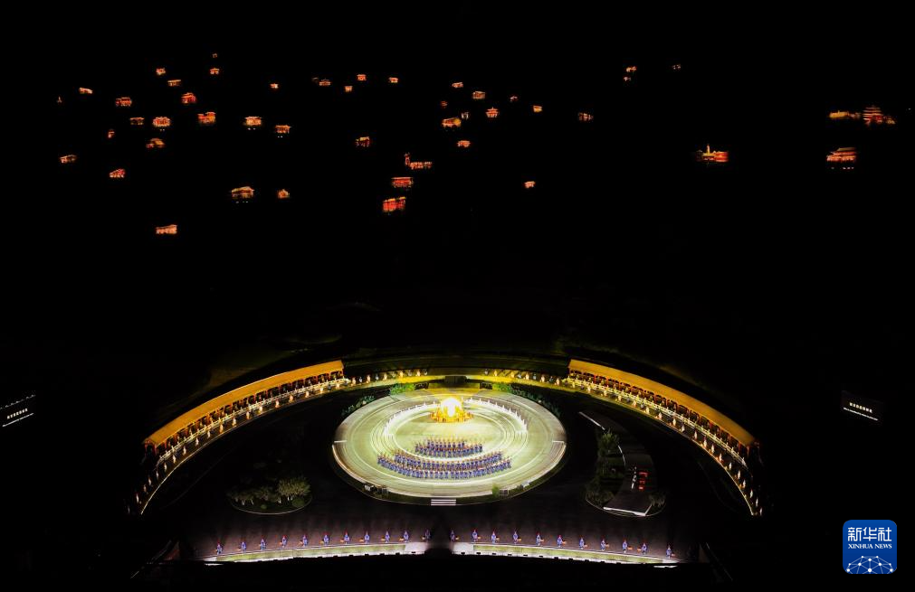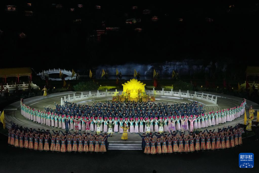 9月3日,演员在大型实景演出《鼎盛王朝·康熙大典》中表演(无人机照片)。