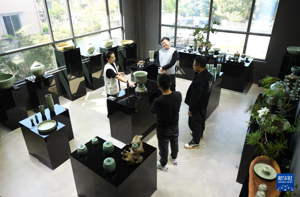10月31日,在“梅夫人”工作室,季资美查看等待上釉的莲瓣纹香炉。