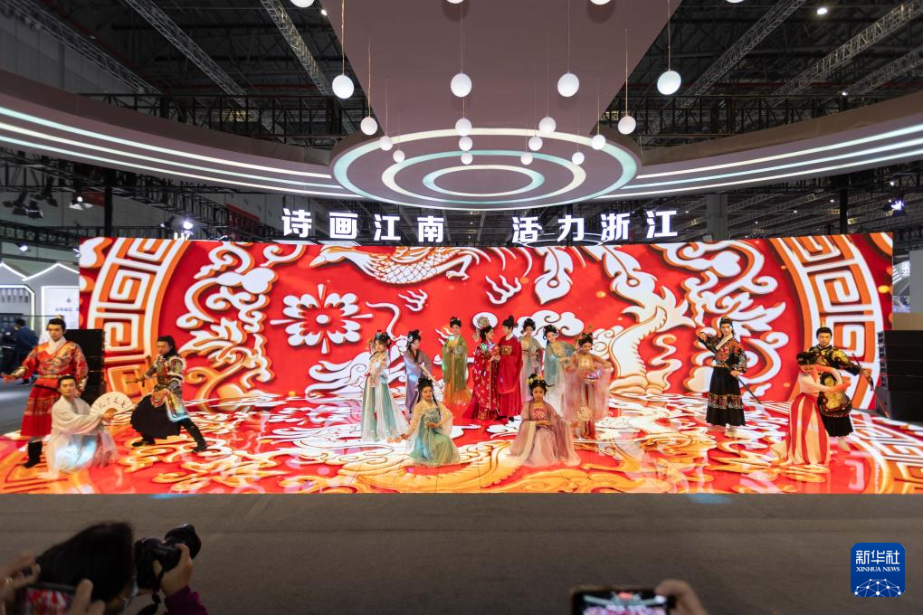 11月16日在浙江展位拍摄的古装表演。