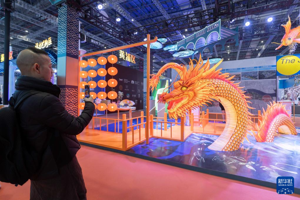 11月16日,参观者在豫园展位拍摄以豫园灯会为主题元素的空间场景。