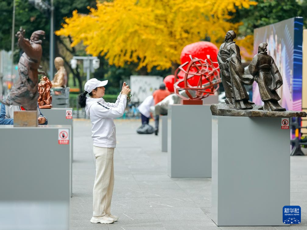 11月30日,人们在欣赏首届天府雕塑展上展出的作品。
