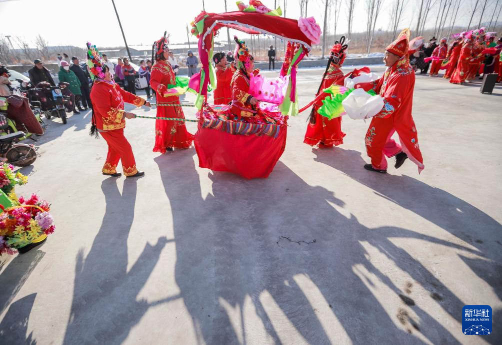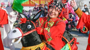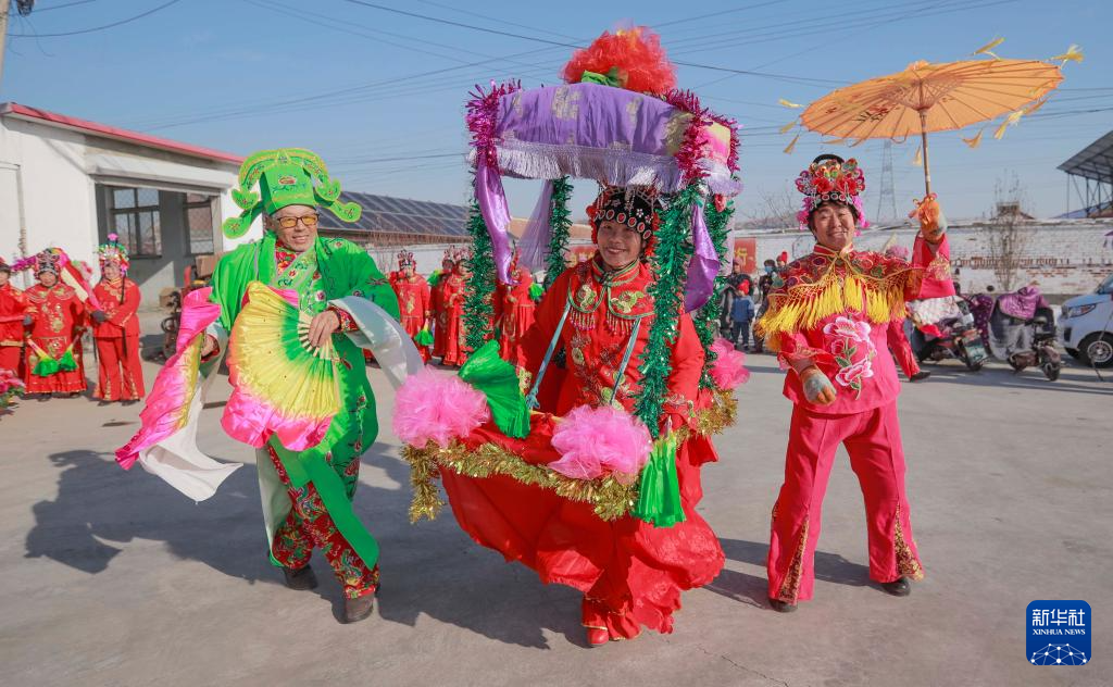 随着新年临近,河北省遵化市的民间艺人忙碌起来,他们加紧排练赶驴、旱船、花轿等传统民俗节目,为迎接新年演出做好准备。