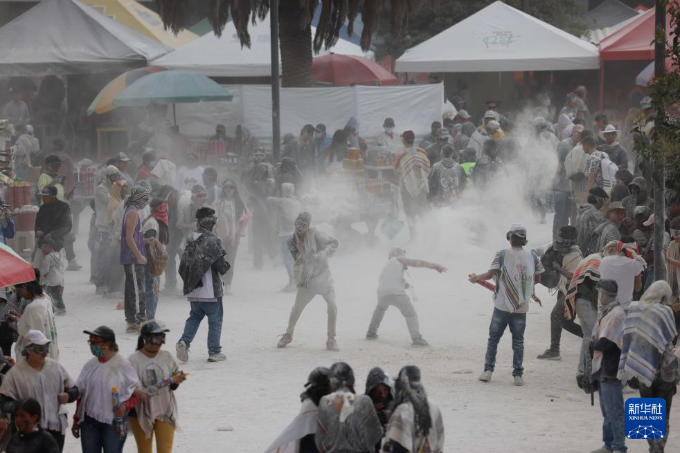 1月3日,人们在哥伦比亚帕斯托参加“黑与白”狂欢节活动。