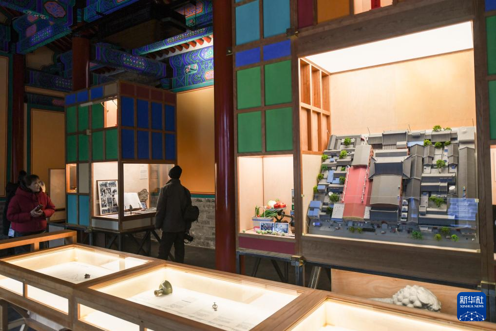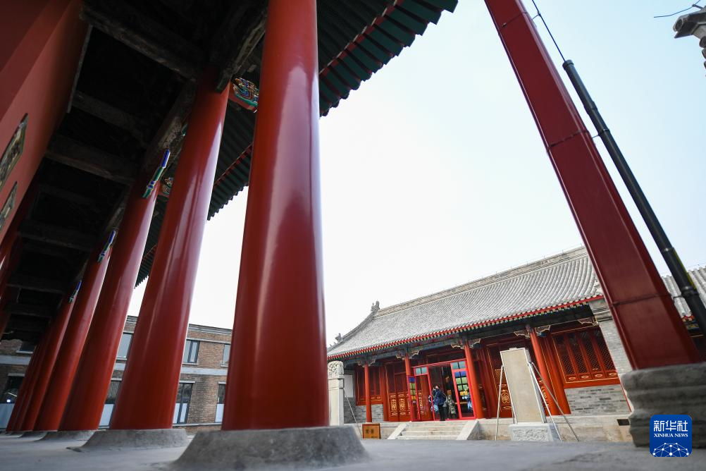 1月18日,人们在宏恩观大雄宝殿内观看“宏恩观:一座北京庙宇的故事”主题展览。