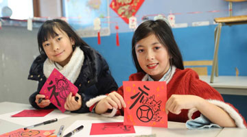 在西藏昌都市洛隆县硕督镇硕督村,孩子们手捧狮子舞道具玩耍(1月19日摄)。