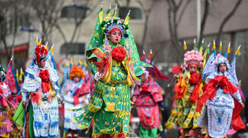 2月21日,演员延翔宇在澳大利亚悉尼“四海同春”访演活动上表演杂技《十面埋伏》。