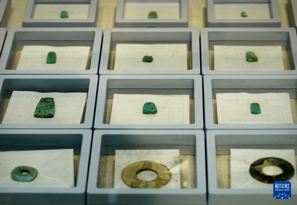 这是王庄遗址出土的玉串饰(1月30日摄)。