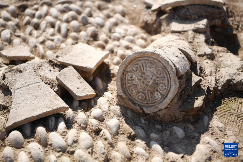 这是甘肃省陇南市礼县四角坪遗址出土的云纹瓦当(2022年6月10日摄)。