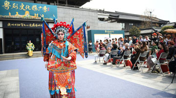 4月14日,福州晋安湖公园“茶会”文化墙旁,市民在户外休闲。